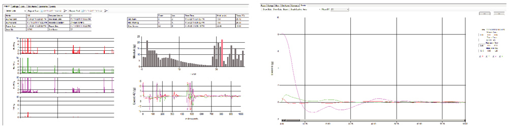 Zoom in for a closer look at specific impacts or deport the data into programs such as Matlab for more detailed analysis.