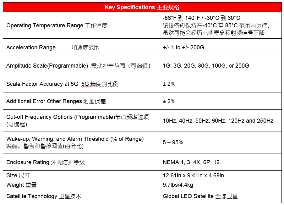 使用ShockLog Satellite震動(dòng)沖擊記錄和追蹤定位系統(tǒng),您可以接收關(guān)于您的產(chǎn)品遇到的不可接受條件的警報(bào)。